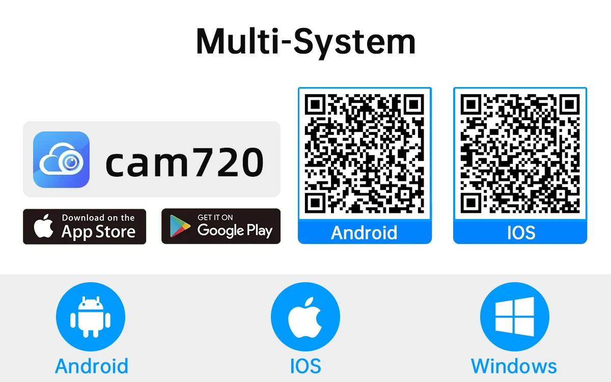 this camera work with cam720 app only.you just need download cam720 app from Goole play or Apple Store, and connect camera by 2.4ghz or 5ghz wifi.